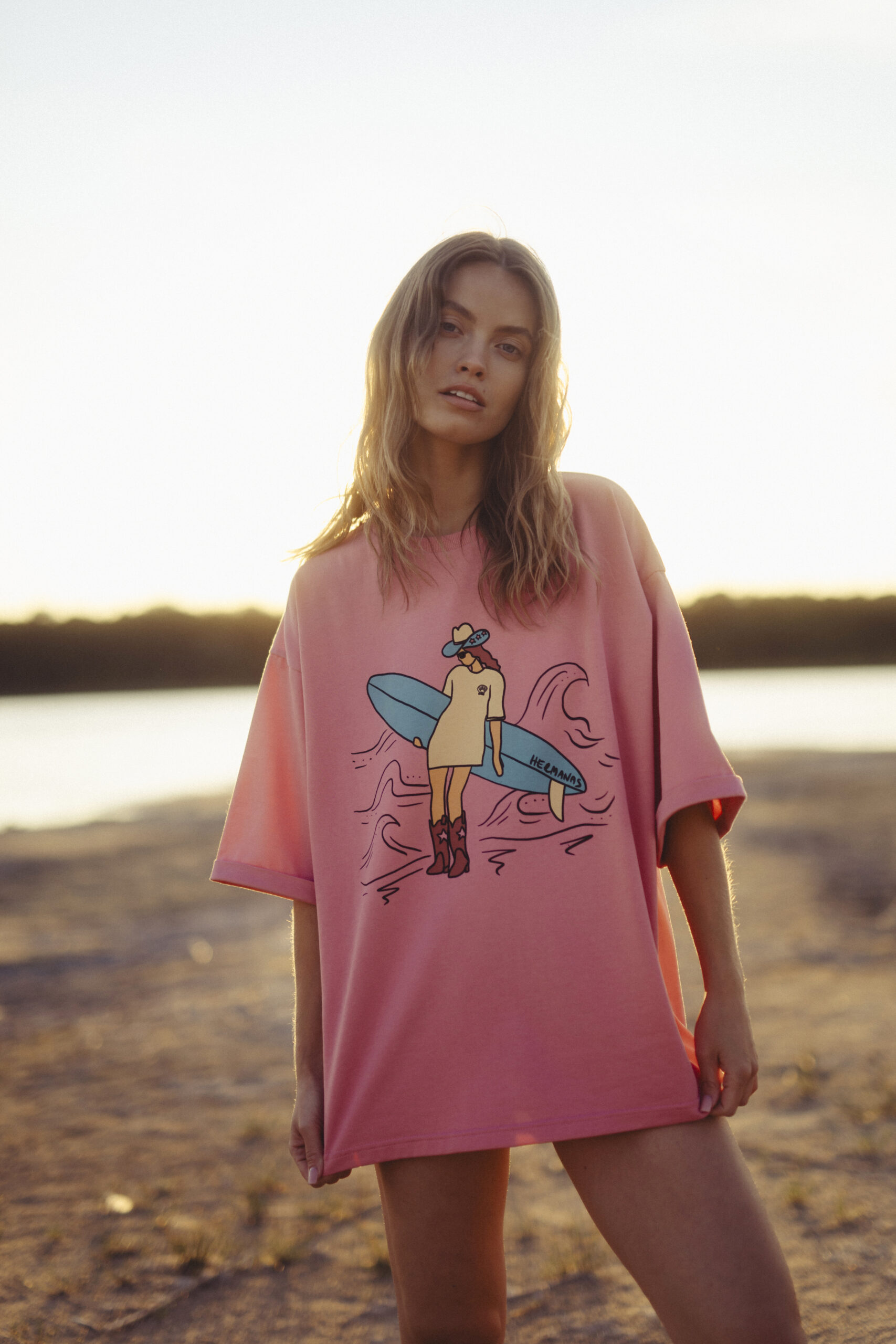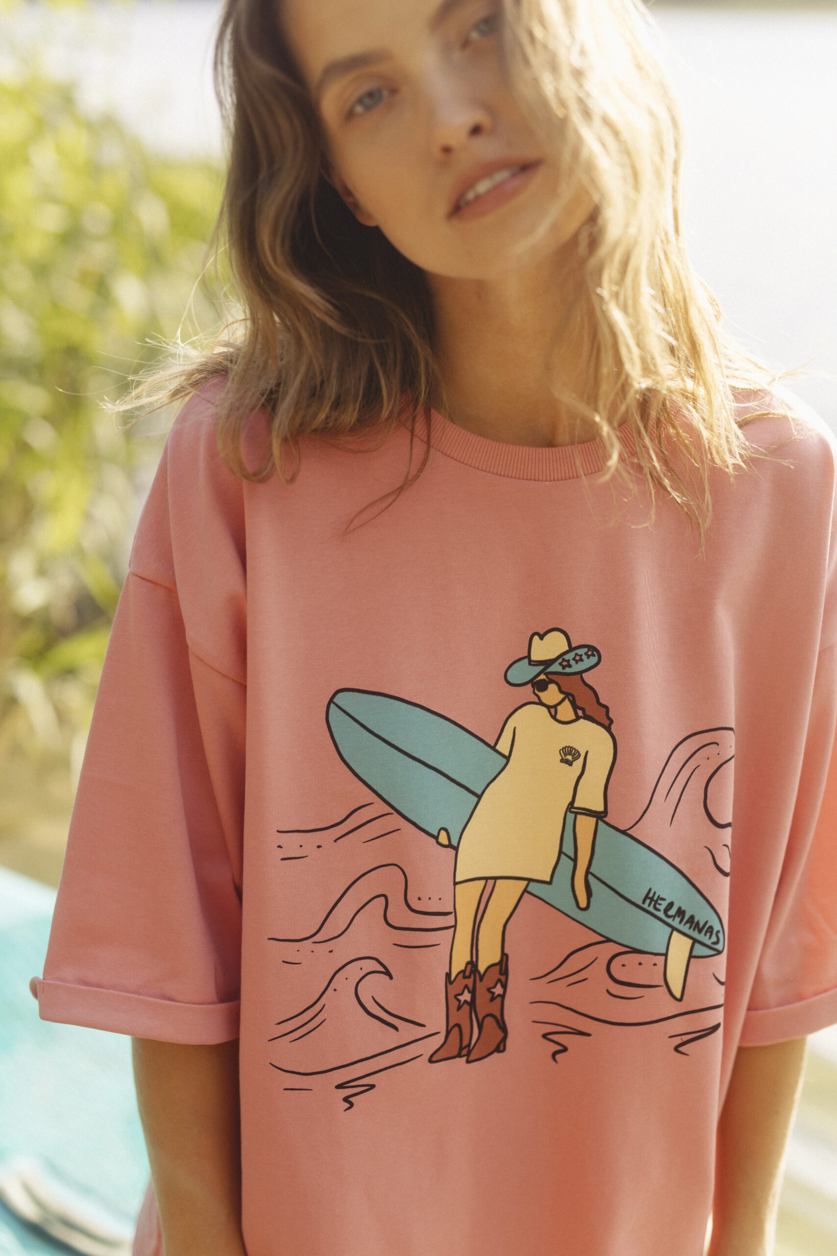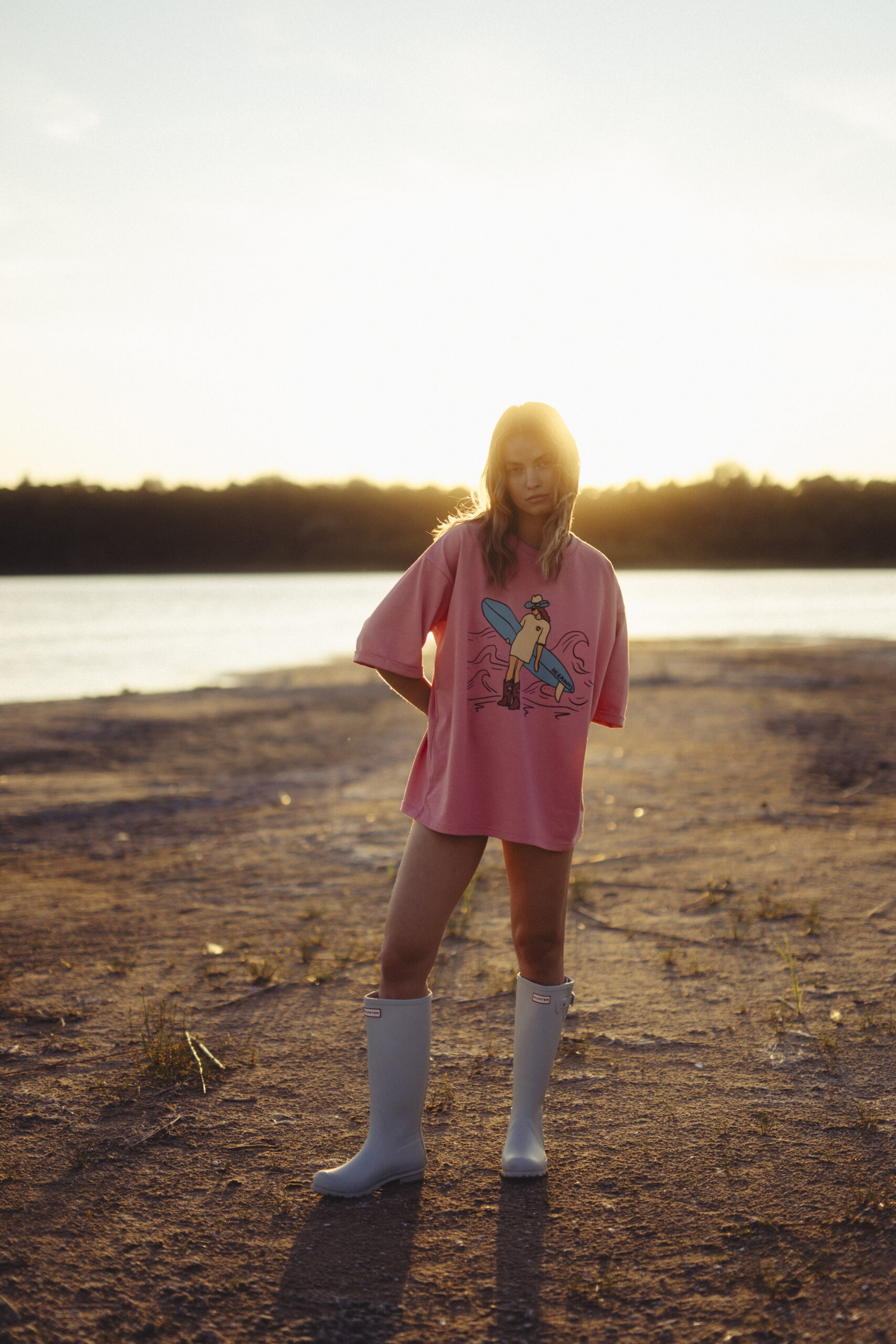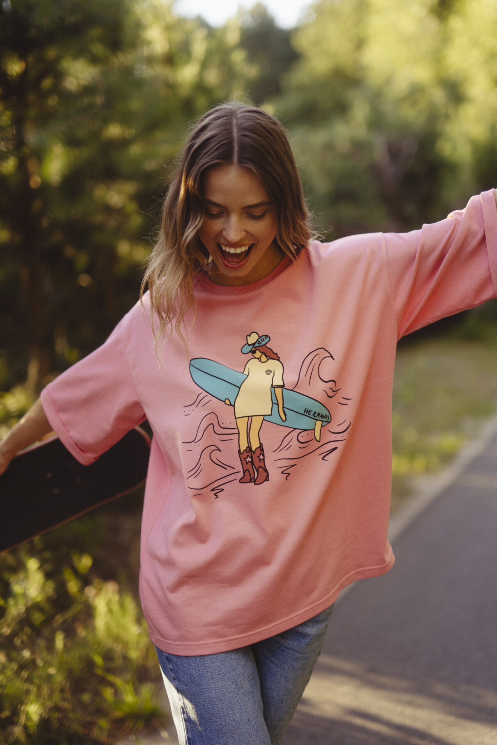 T-shirt Allie Pink Wave to idealny wybór na ciepłe dni – ma luźny krój, miękki materiał i grafikę, która od razu kojarzy się z plażą i surfingiem. Różowy kolor dodaje świeżości, a nadruk surferki przywołuje klimat fal, piasku i wakacyjnego luzu. Sprawdzi się na co dzień, na wyjazd czy po prostu wtedy, gdy chcesz poczuć trochę morskiego vibe’u.  T-shirt Allie w 100% został wyprodukowany w Polsce.